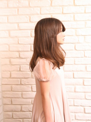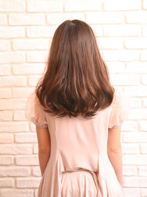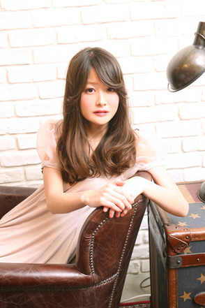ローレイヤースタイル。毛先にのみカールが出るようにパーマをかけ、裾にボリューム感が出るように。前髪は長めに残し、自然に流れるようにパーマをかける。