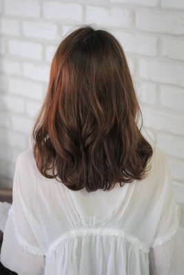 あまりきつく巻きすぎない感じが◎無造作ウェーブでナチュラルロブ!トップにボリュームを出すことでふんわり感もでます。