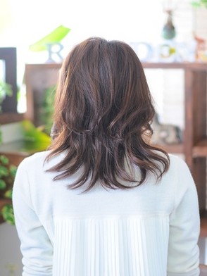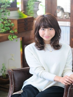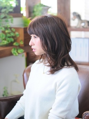 柔らかい雰囲気が出るようにレイヤーを入れた柔らかミディ。重めの前髪とゆるふわカールで小顔効果も抜群☆似合わせカットで大人かわいいを演出☆無造作なランダムカールとイノセントカラーでふんわりと柔らかな雰囲気にイメチェンしてみては。