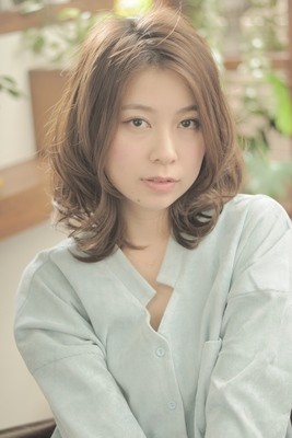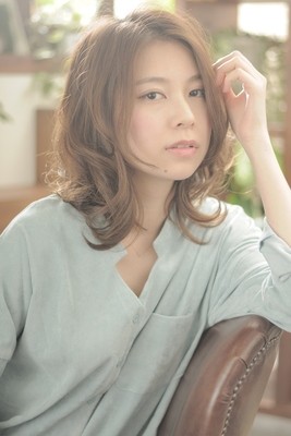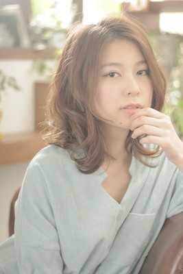 アウトラインを外ハネに巻きトップをウェーブで巻くことでメリハリのある可愛いハニーヘアに!!前髪は長めで甘辛MIX♪