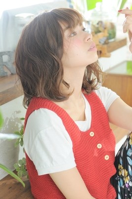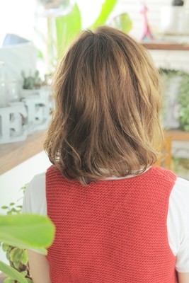 肩に付くくらいのロブのスタイル!重さも残しつつ、ゆるめに巻いて動きをつける事で軽やかさも表現できます!!
