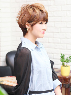 重めのショートボブスタイル。ローライトを入れて奥行き感を出すことにより重すぎず、動きのある立体的なスタイルの完成。