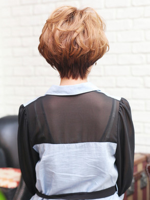 よくタオルドライした後、ムースをつけ根本にドライヤーの風を当てるようにドライ。毛先1回転のパーマなので、毛先のカールを出すようにやさしく乾かせば全体に、柔らかなシルエットのスタイルの完成!
