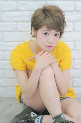 簡単スタイリングの似合わせカット☆少しだけカールをつける事で抜け感のあるやわらかでナチュラルなショートヘアに。カラーは明るめなイルミナカラーで外人風に!!