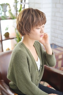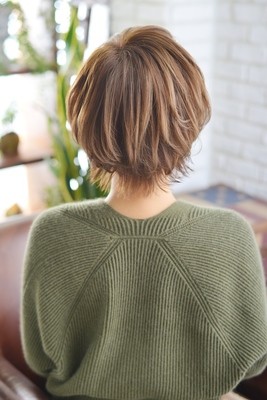 マッシュ風ショートスタイル!襟足を少し長めに残して外ハネにし、トップはレイヤーを入れて動きを出すスタイル。ショートから伸ばし途中の時期にもオススメ!!