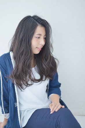 黒髪だけど、重たすぎない巻き加減が重要!巻きすぎるときつく見えるので要注意。