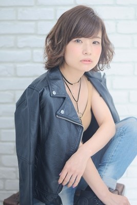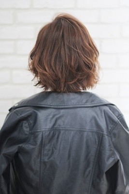 顔周りと襟足部分を外ハネ+後ろの表面をフォワードに巻く事で流行かつ立体感を出すことができます。